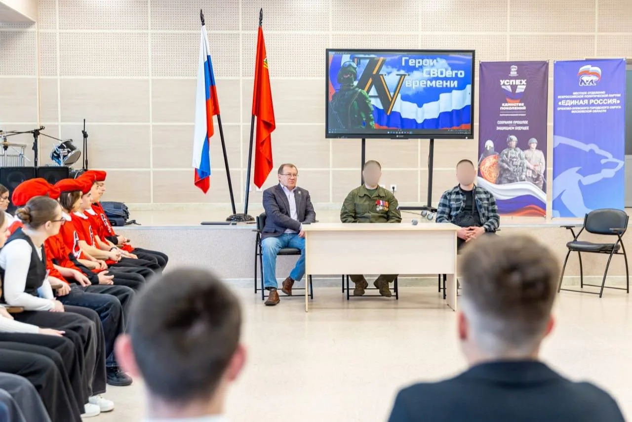 В Дрезненской школе №1 прошла встреча со старшеклассниками в рамках проекта «Успех V единстве поколений». С ребятами пообщались участники специальной военной операции Дионисий и Даниил и член фракции Единой России, депутат Мособлдумы Эдуард Живцов.