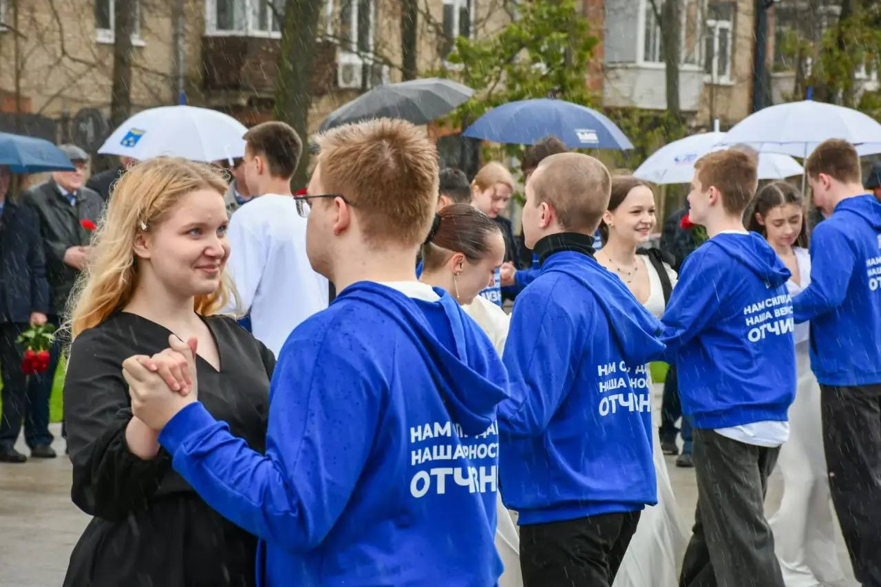 Активисты «Молодой Гвардии» станцевали для всех собравшихся вальс под песню, посвященную Жуковскому.