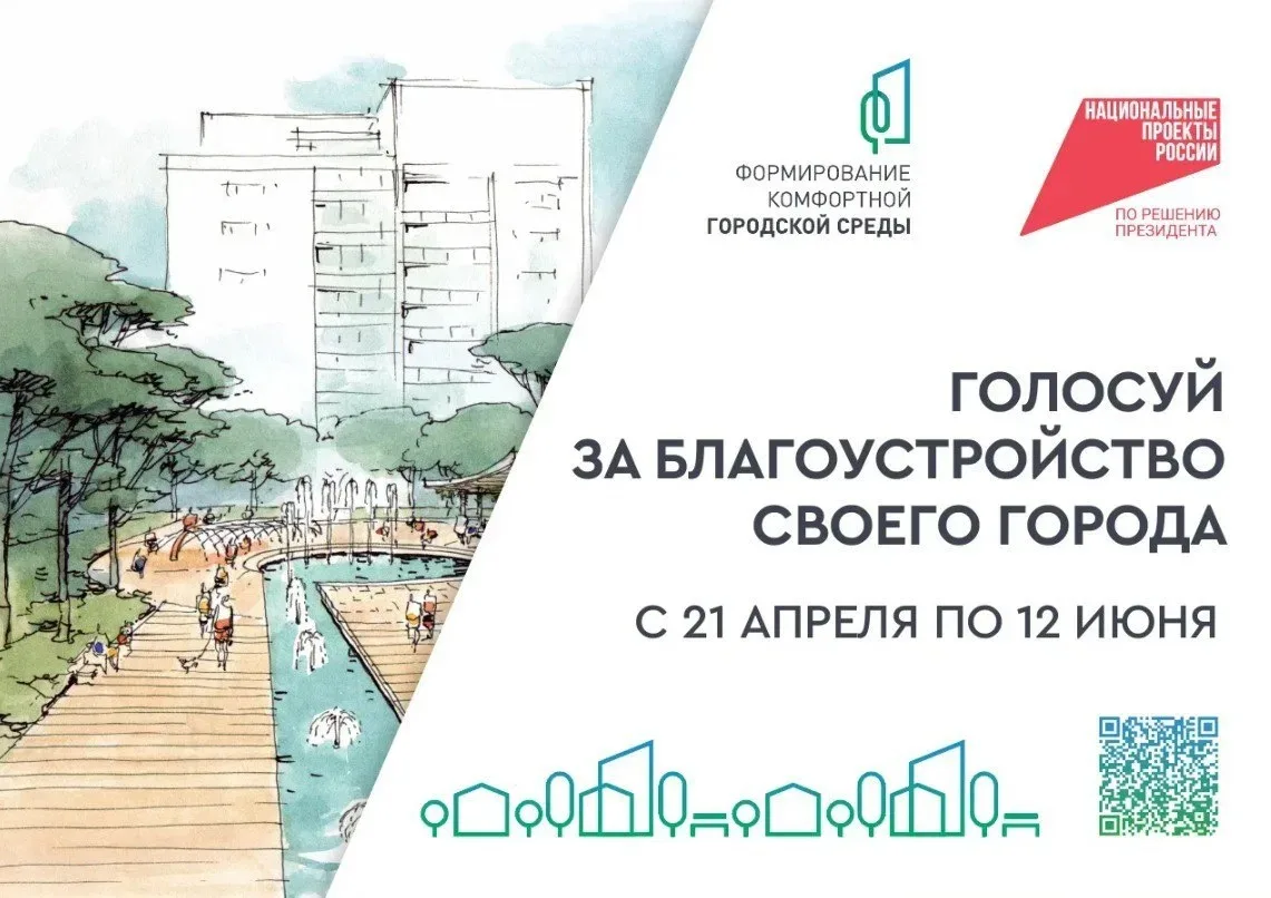 21 апреля началось всероссийское голосование граждан по выбору общественных территорий, подлежащих благоустройству в 2026 году по программе «Формирование комфортной городской среды».