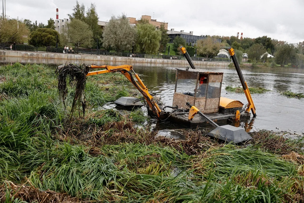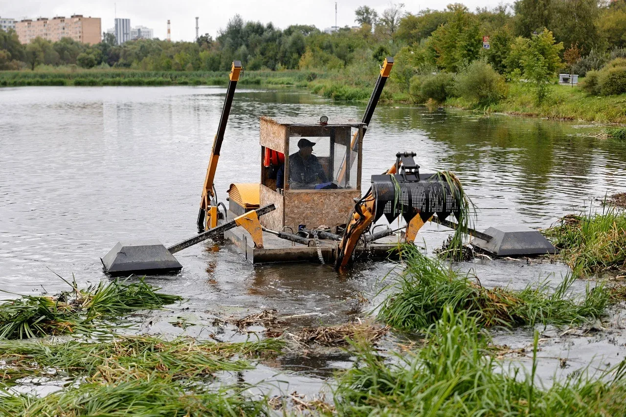 Опыт применения такой техники в округе уже есть. Аналогичную машину арендовали для работ на реке Яузе в районе парка Мира. С ее помощью были вычищены прибрежные воды.