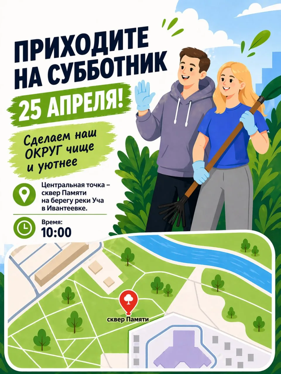 Уважаемые жители, 25 апреля в Пушкинском пройдет общеобластной субботник.