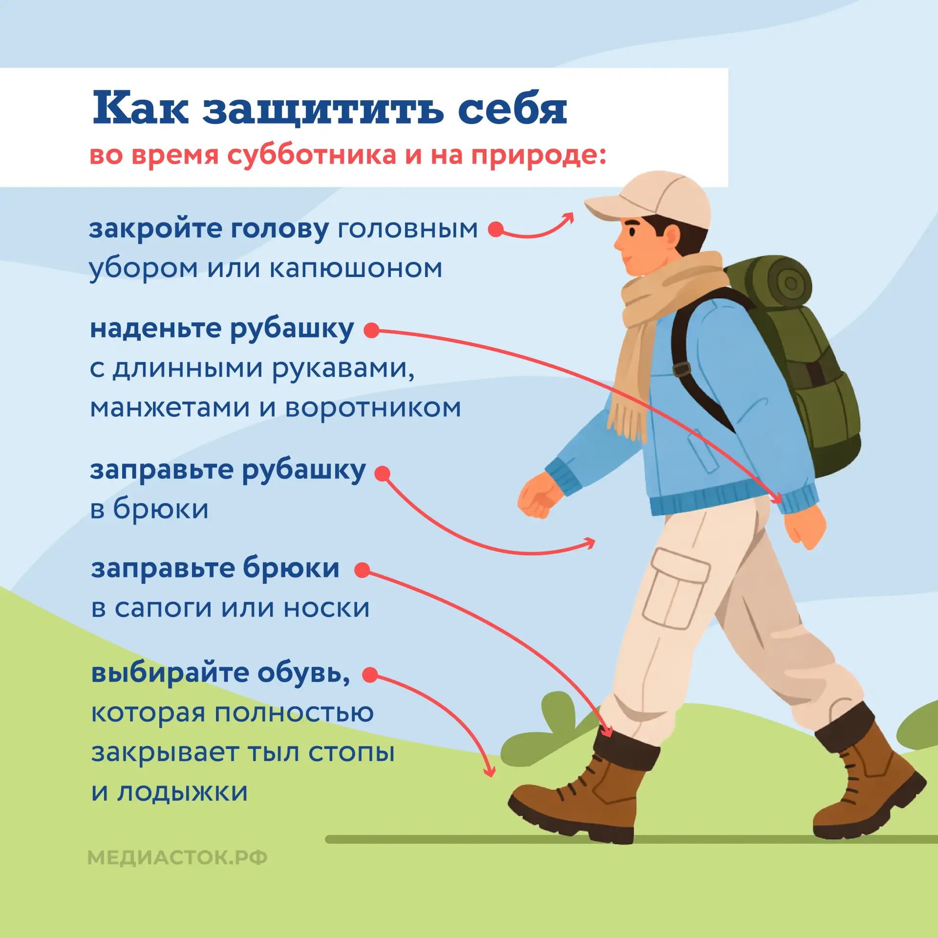 Напоминаем основные правила защиты от клещей, которые особенно актуальны перед весенними субботниками