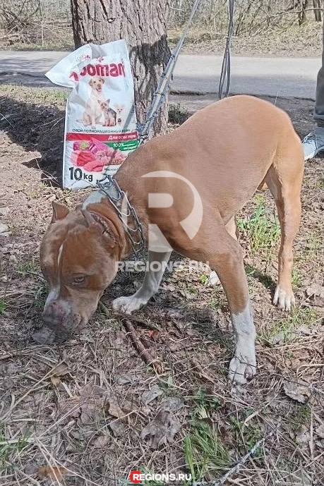 В Солнечногорском городском округе был найден питбуль, привязанный к дереву и оснащенный строгим ошейником. Рядом с ним находился большой мешок с кормом, что, по мнению очевидцев, свидетельствует о попытке хозяев избежать ответственности за жестокое обращение с животным, оставив ему еду.