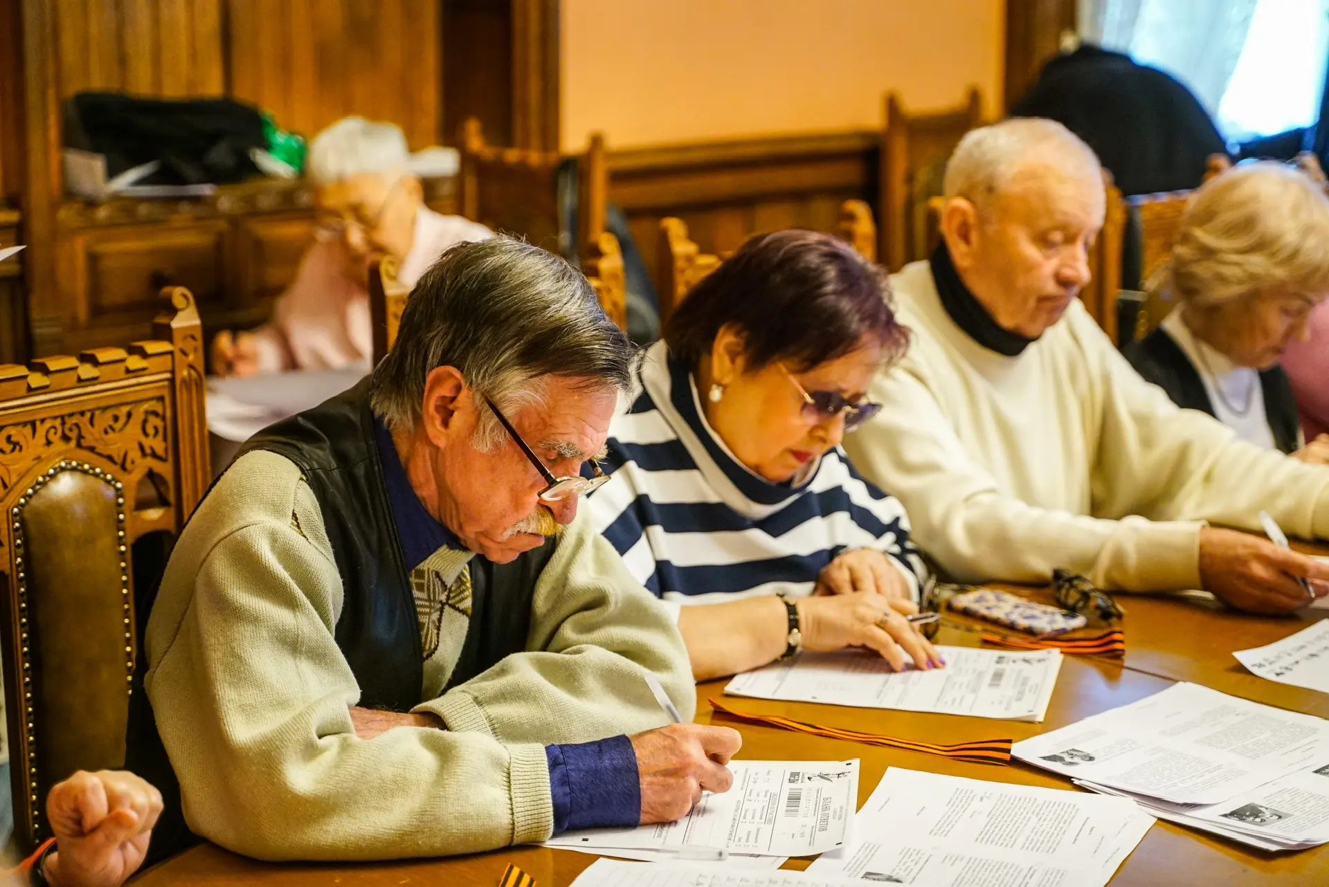 Одной из площадок акции стала живописная усадьба Середниково в Химках. Здесь собрались депутаты, сотрудники усадьбы, участники клуба «Активное долголетие» и все желающие проверить свои знания по истории войны.