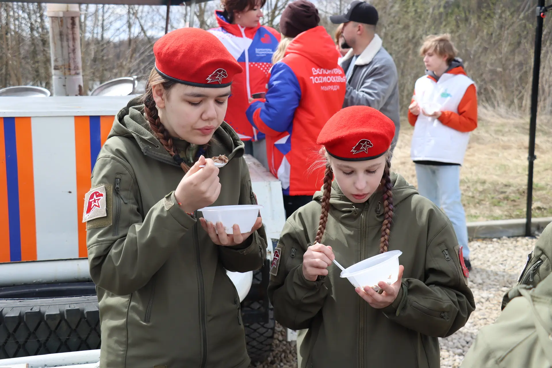 Для участников на точке была организована полевая кухня — горячий чай, каша.