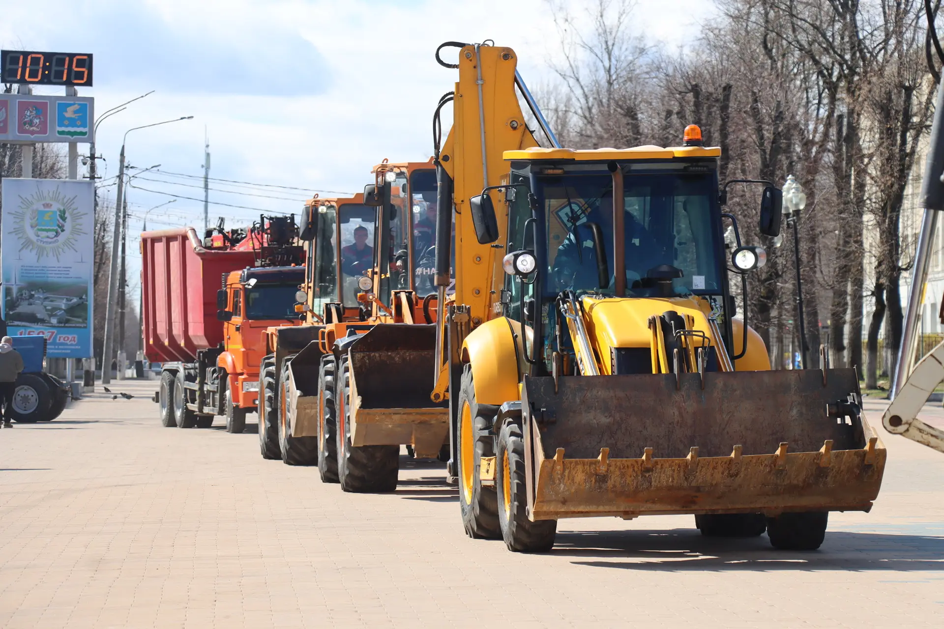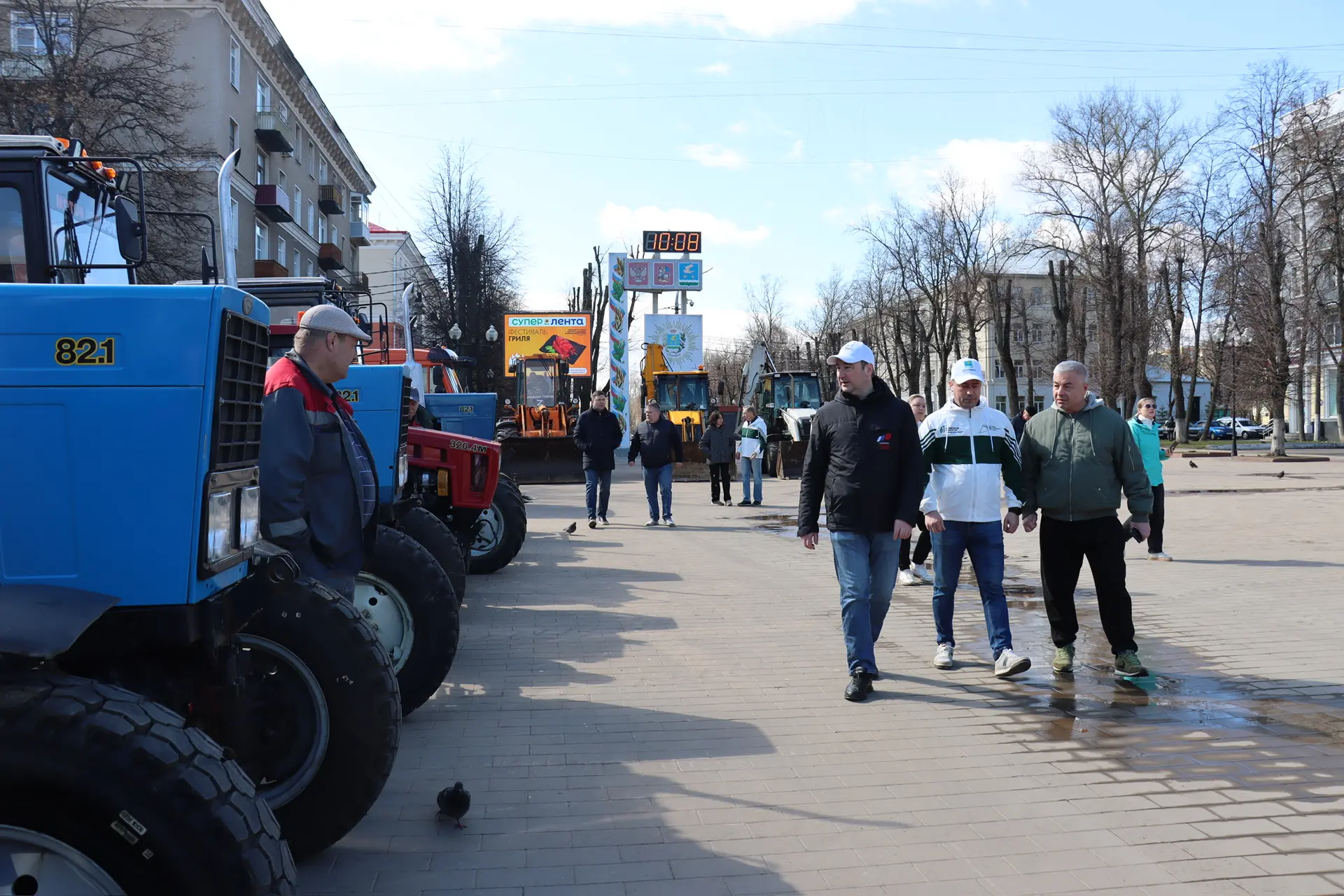 Традиционно начали со смотра коммунальной техники — более 40 единиц: тракторы, поливомоечные машины, спецтехника наших служб. Это хороший показатель готовности к масштабной работе после зимы.