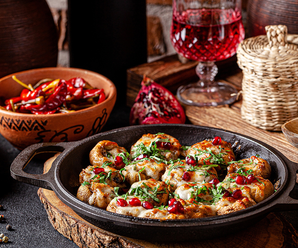 В Азии и на Ближнем Востоке гранатовый сок традиционно используется для маринования мяса, привнося в блюдо невероятную кислинку. Армяне, турки и азербайджанцы подают его в качестве соуса или тушат мясо в гранатовом соке, создавая гармоничное сочетание вкусов. Грузинские кухни поражают своим разнообразием, предлагая вкусные соусы из граната с орехами и специями, а также блюда, нафаршированные гранатовыми зернами.