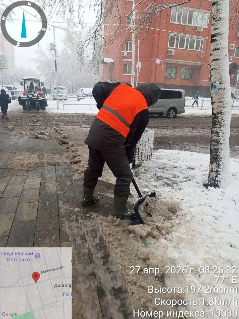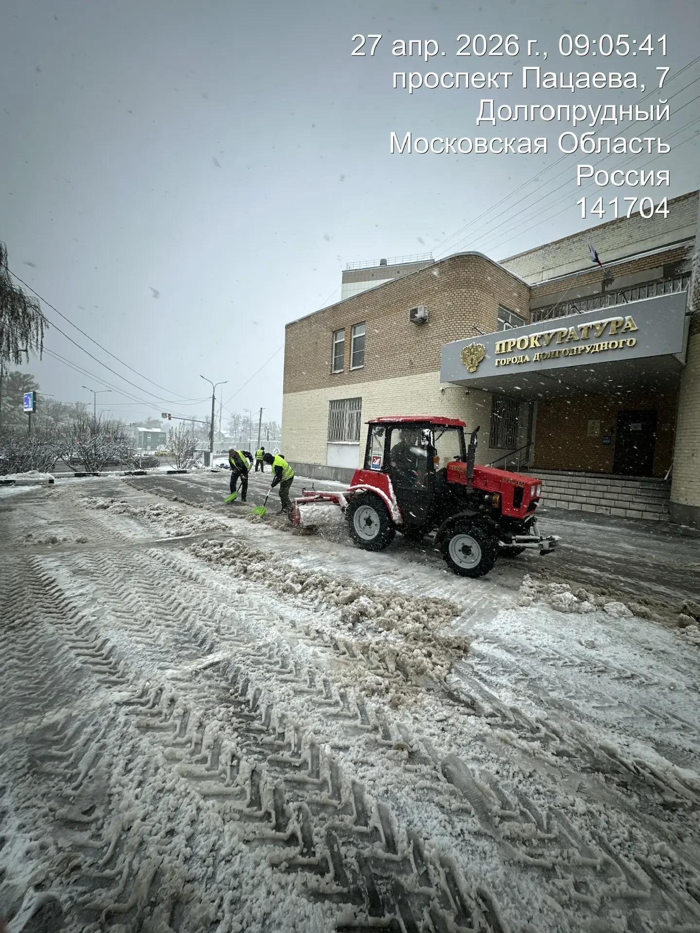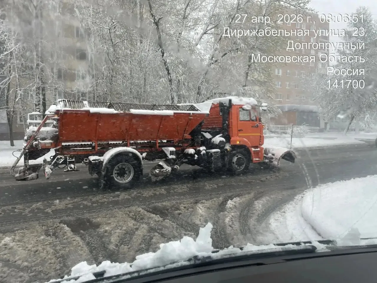 Зима этой весной удалась: в Долгопрудном вновь чистят дороги и общественные территории от снега