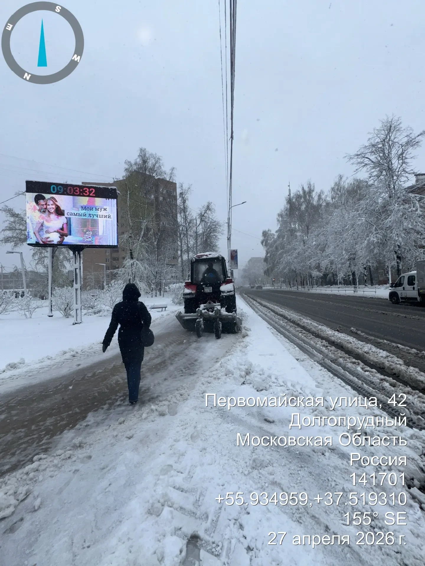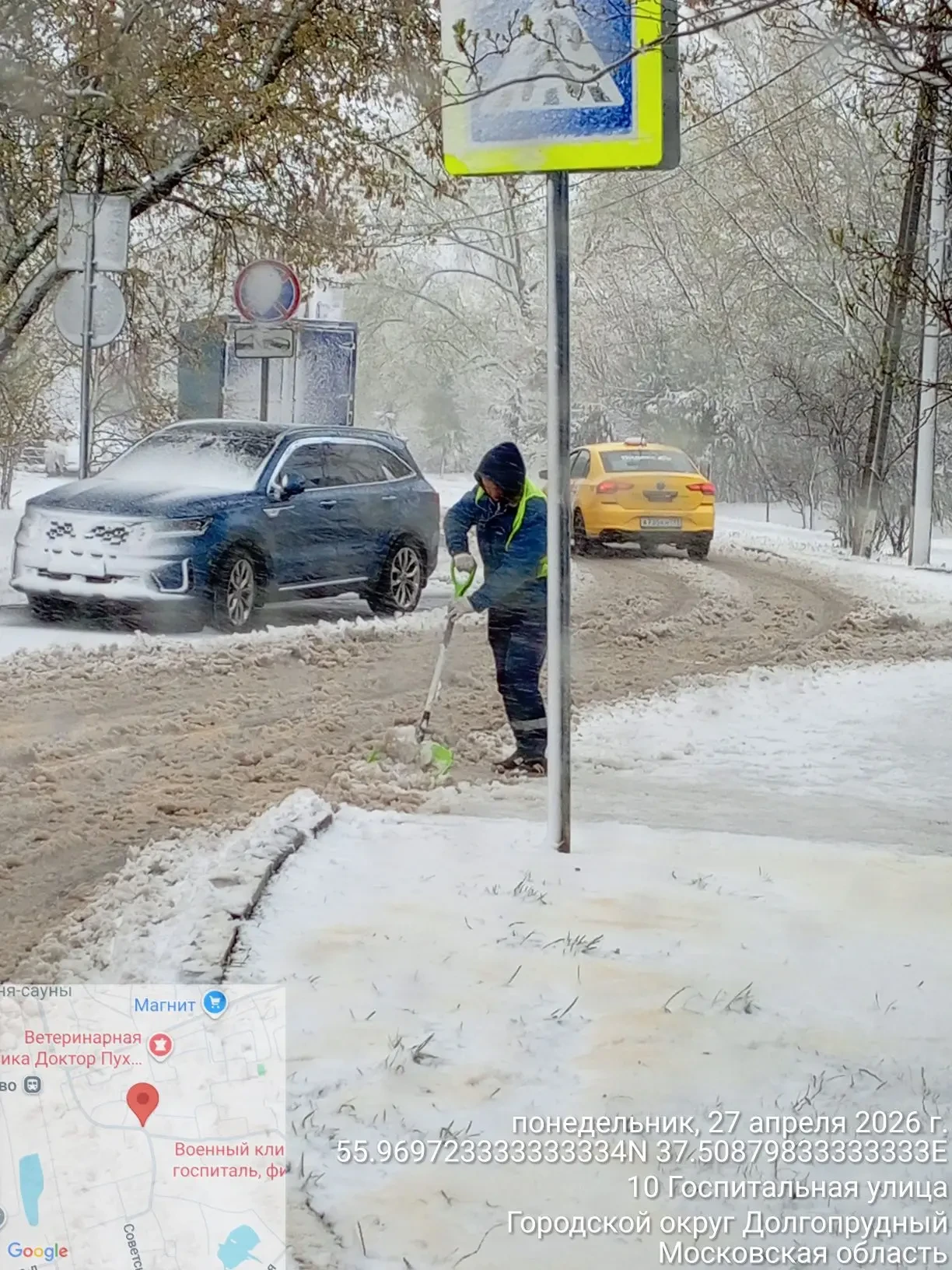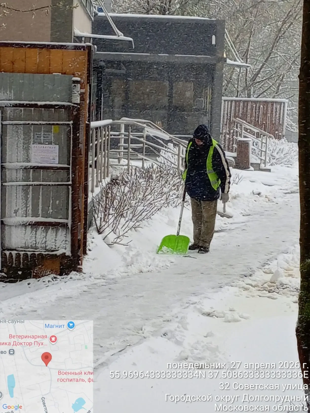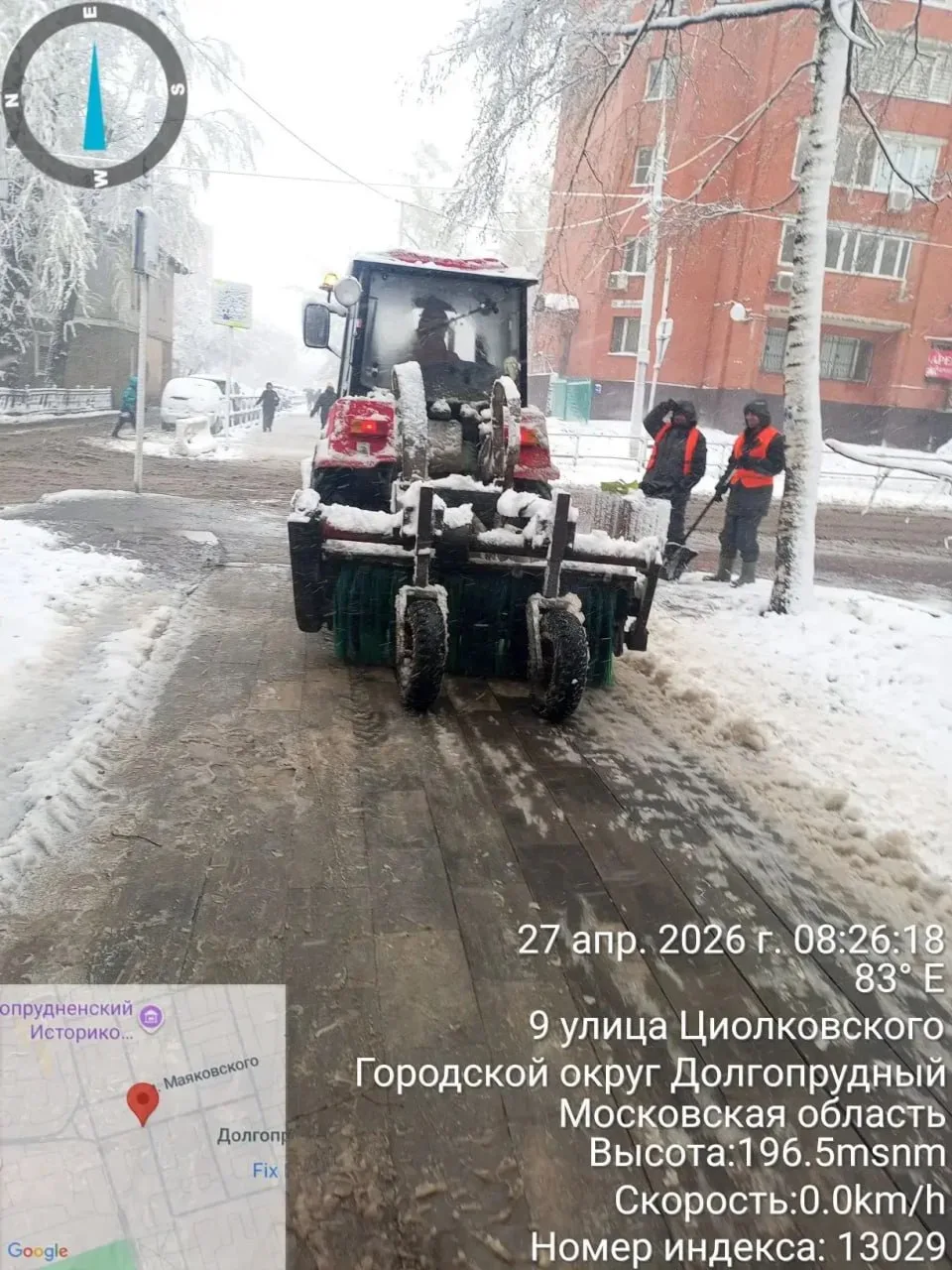 Зима этой весной удалась: в Долгопрудном вновь чистят дороги и общественные территории от снега