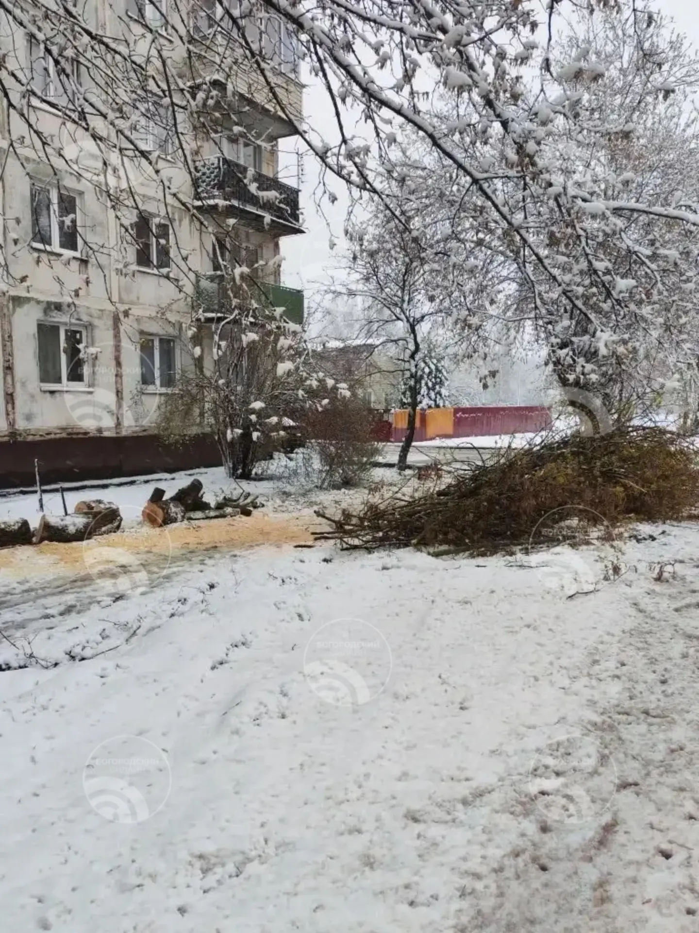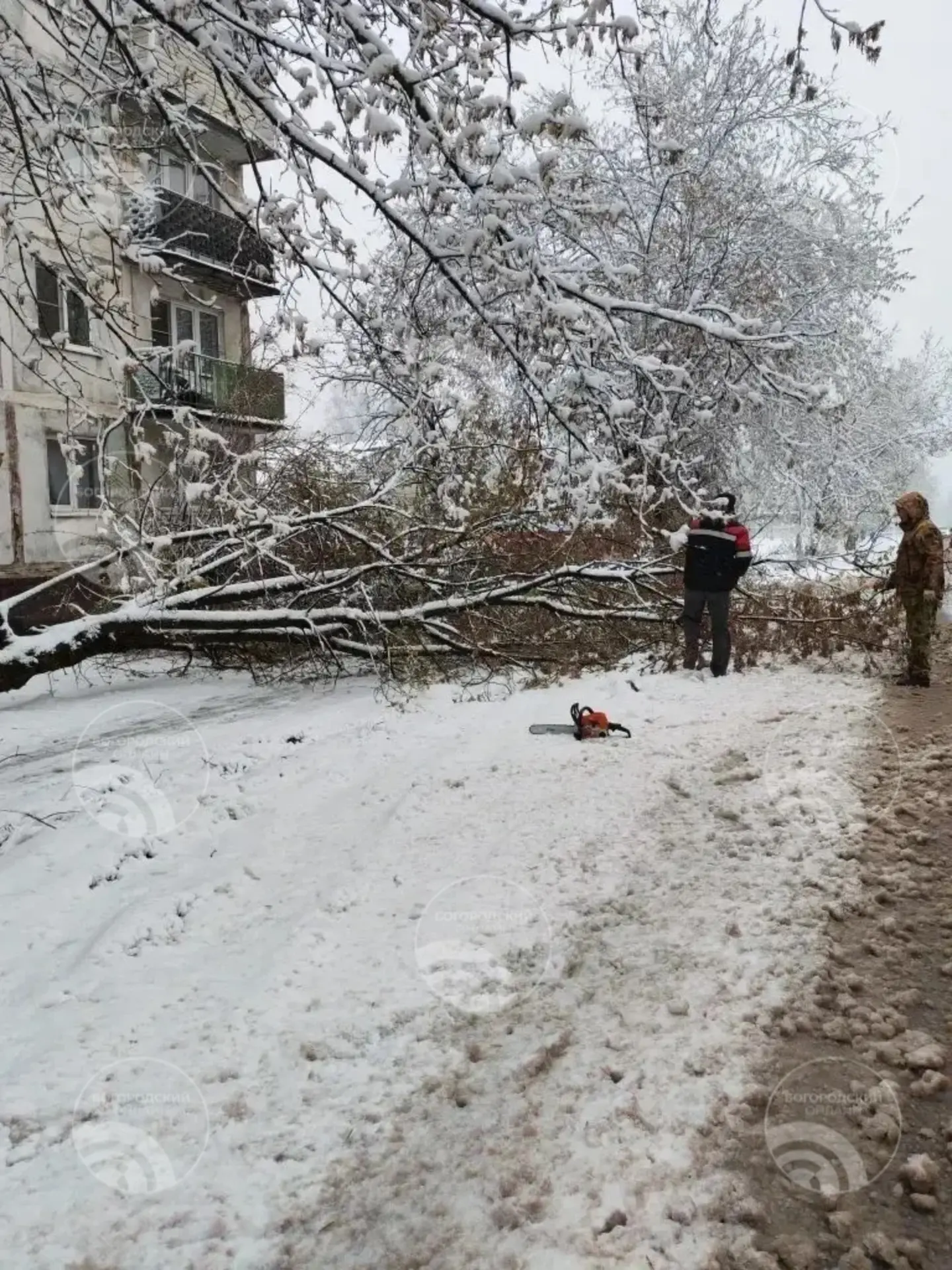 От управляющих компаний – ещё 250 дворников + 10 единиц техники по дворам. Поваленные деревья пилят бригады с автовышками.