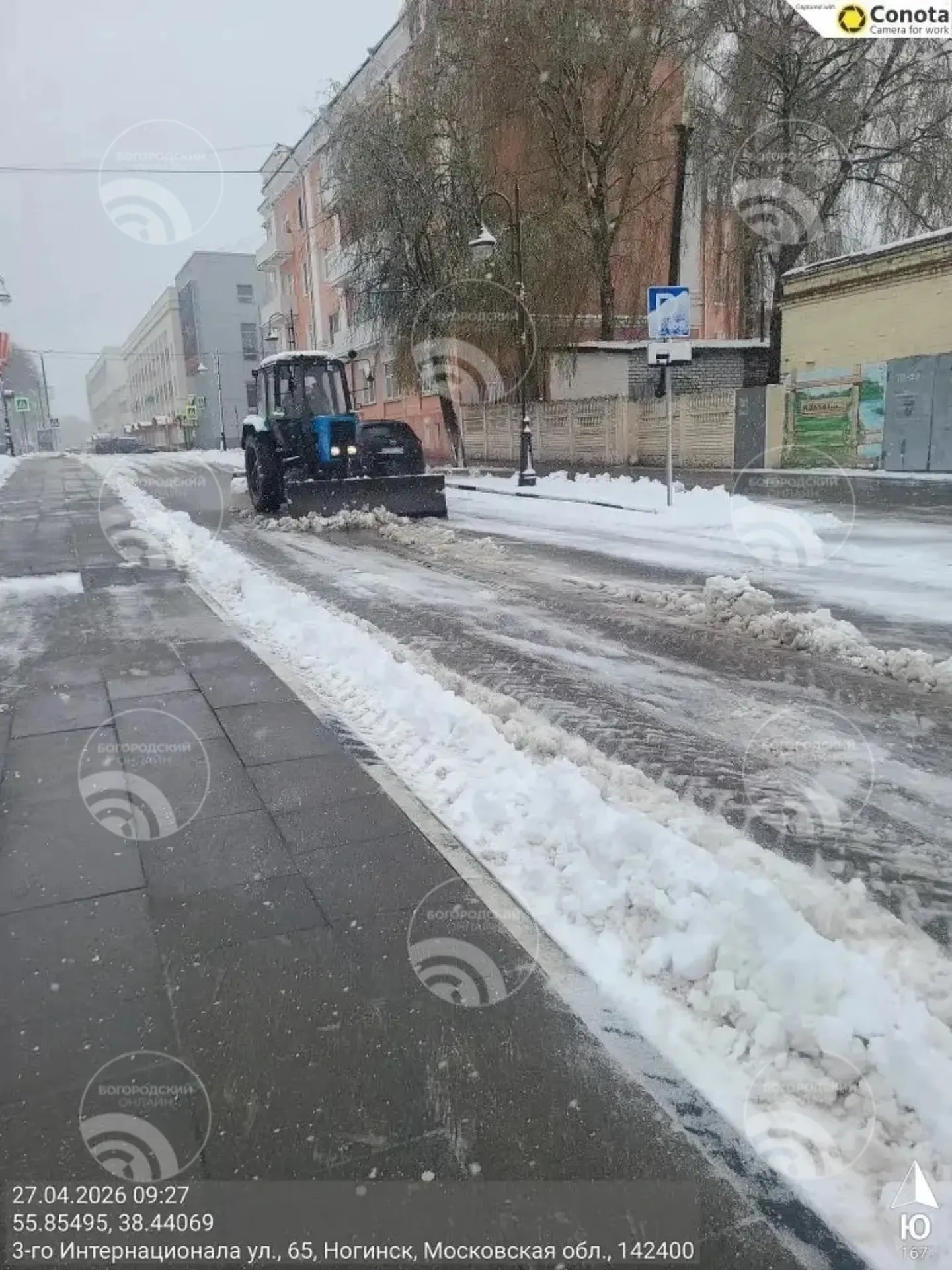 Пока город спал, техника работала. Около 16 подметающих тракторов вышли на улицы Ногинска с двух часов ночи. Днём к ним присоединились полные штаты дворников и уборщиков.