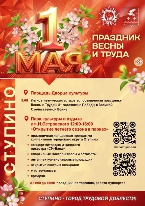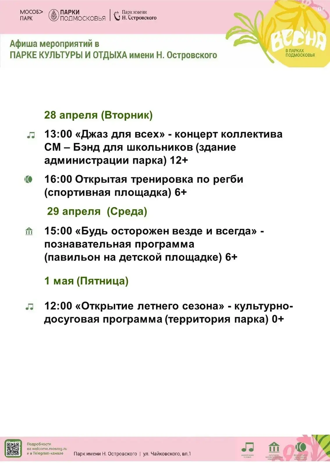 1 мая пройдут мероприятия, посвященные Празднику Весны и Труда и открытию летнего сезона.