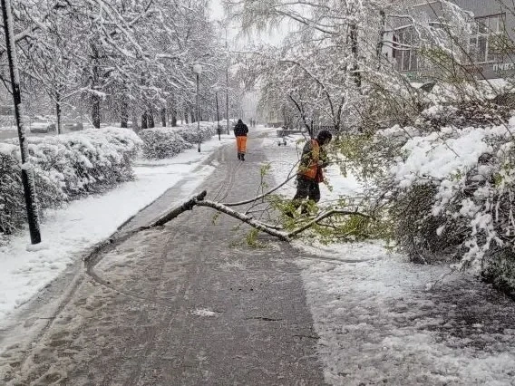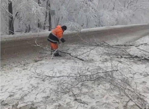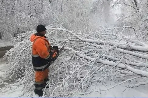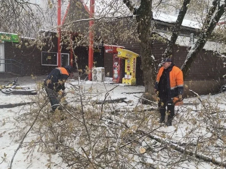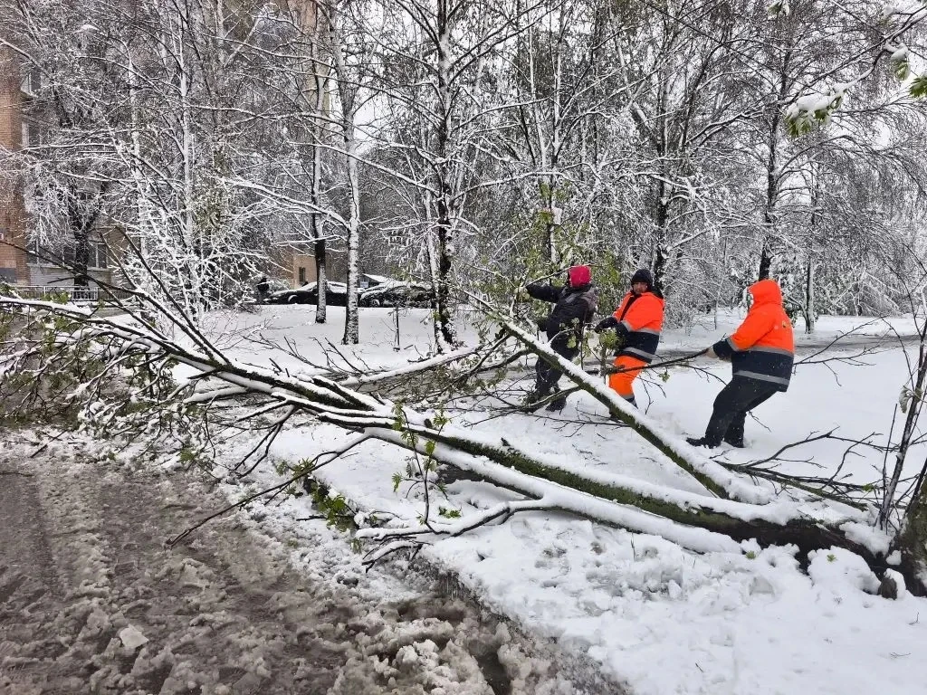 В округе из-за сильного снегопада на данный момент зафиксировано падение более 50 деревьев.