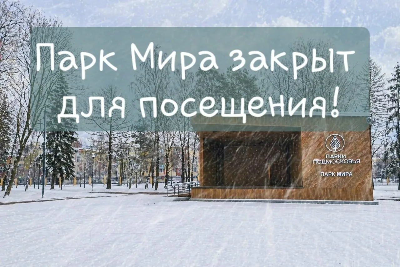 Изза неблагоприятных погодных условий парк Мира временно закрыт для посещения. Спортивные мероприятия, запланированные на понедельник, 27 апреля, в озёрском парке «Сосновый бор» и сквере имени В.А. Зайцева, также переносятся.