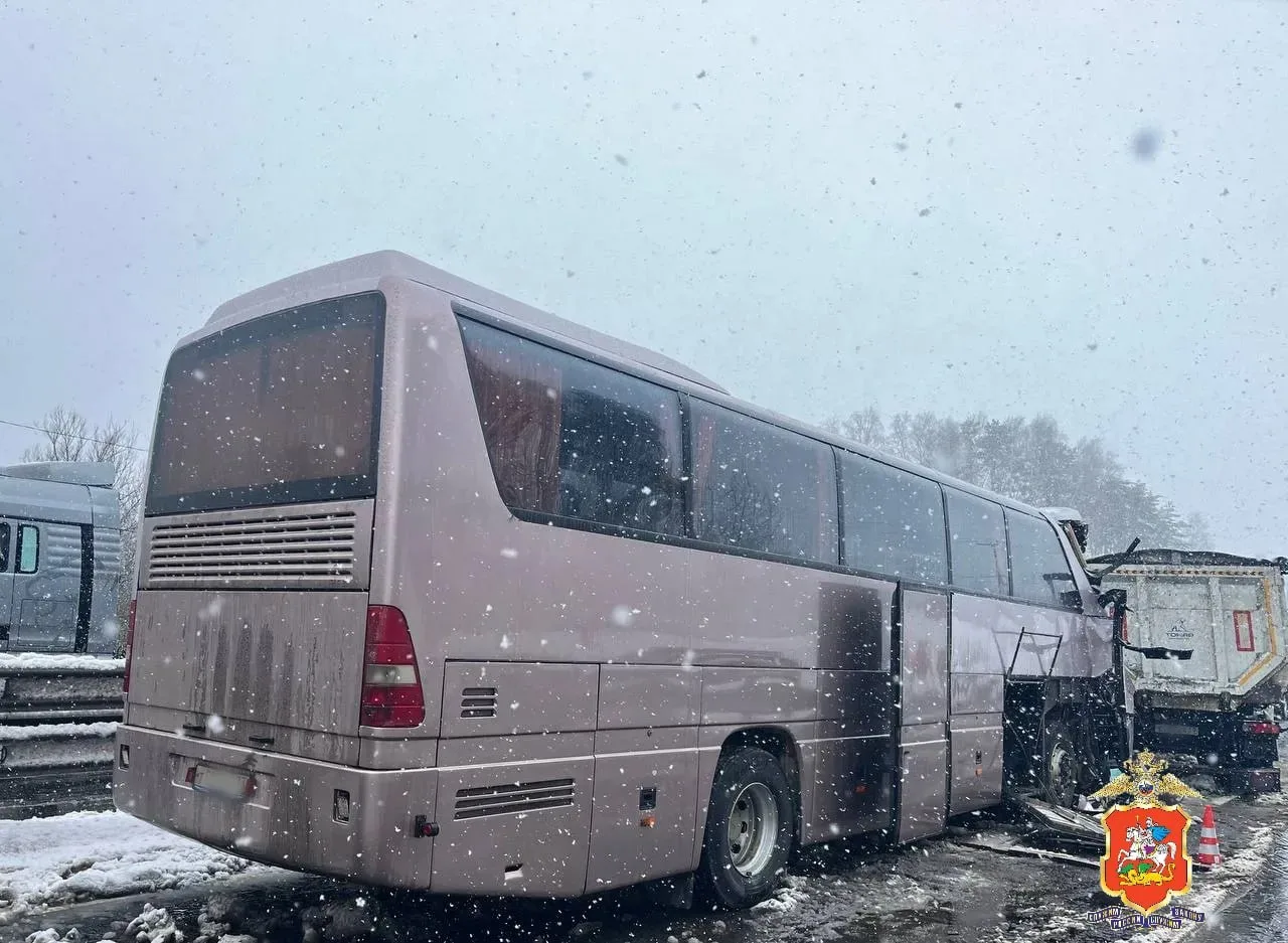 Автобус с пассажирами врезался в попутно двигавшийся грузовик в Подмосковье.
