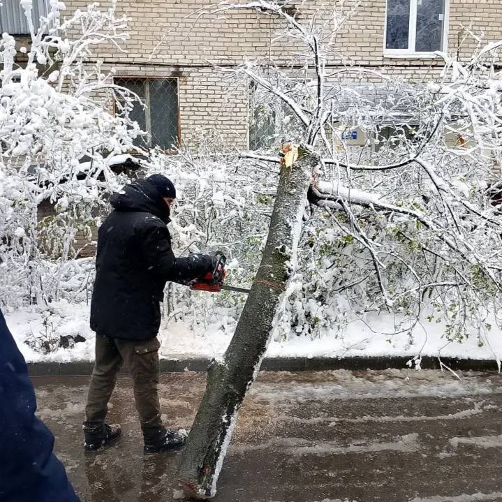 Помимо расчистки, ведётся масштабная работа по устранению последствий стихии. Сотрудники коммунальных служб заняты удалением сломанных веток деревьев и кустарников, не выдержавших тяжести мокрого снега. Проводится обрезка повреждённых веток и распил остатков деревьев, что важно для обеспечения безопасного прохода пешеходов.
