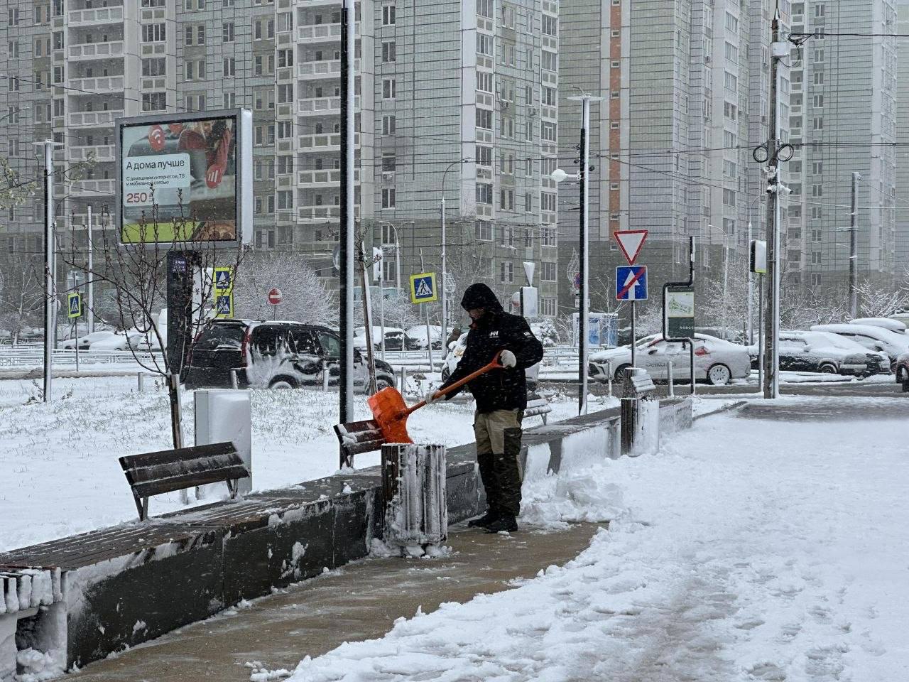 В связи с внезапным выпадением снега в апреле, коммунальные службы городского округа Подольск перешли на более усиленный режим работы. С раннего утра 27 апреля специалисты активно расчищают улицы, остановки общественного транспорта, трассы, парки, дворы и скверы от обильных снежных масс.