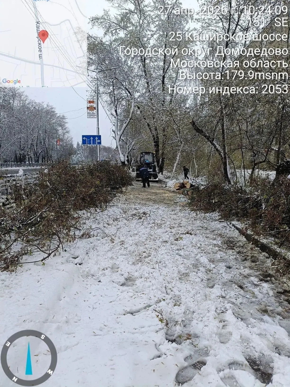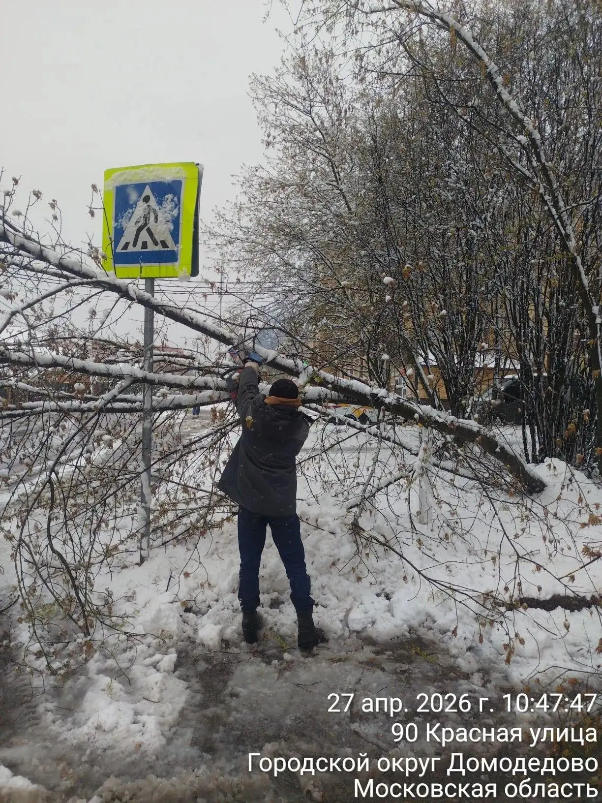 После ночного снегопада и сильного ветра по всему округу зафиксировано множество поваленных деревьев.