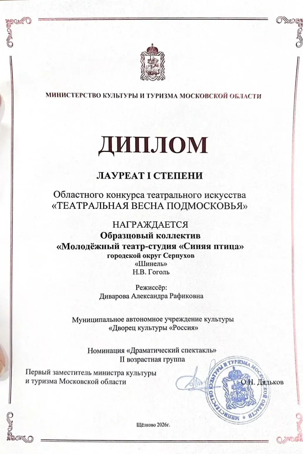 Образцовый коллектив «Молодёжный театр-студия „Синяя птица“» выступил на областном конкурсе «Театральная весна Подмосковья»