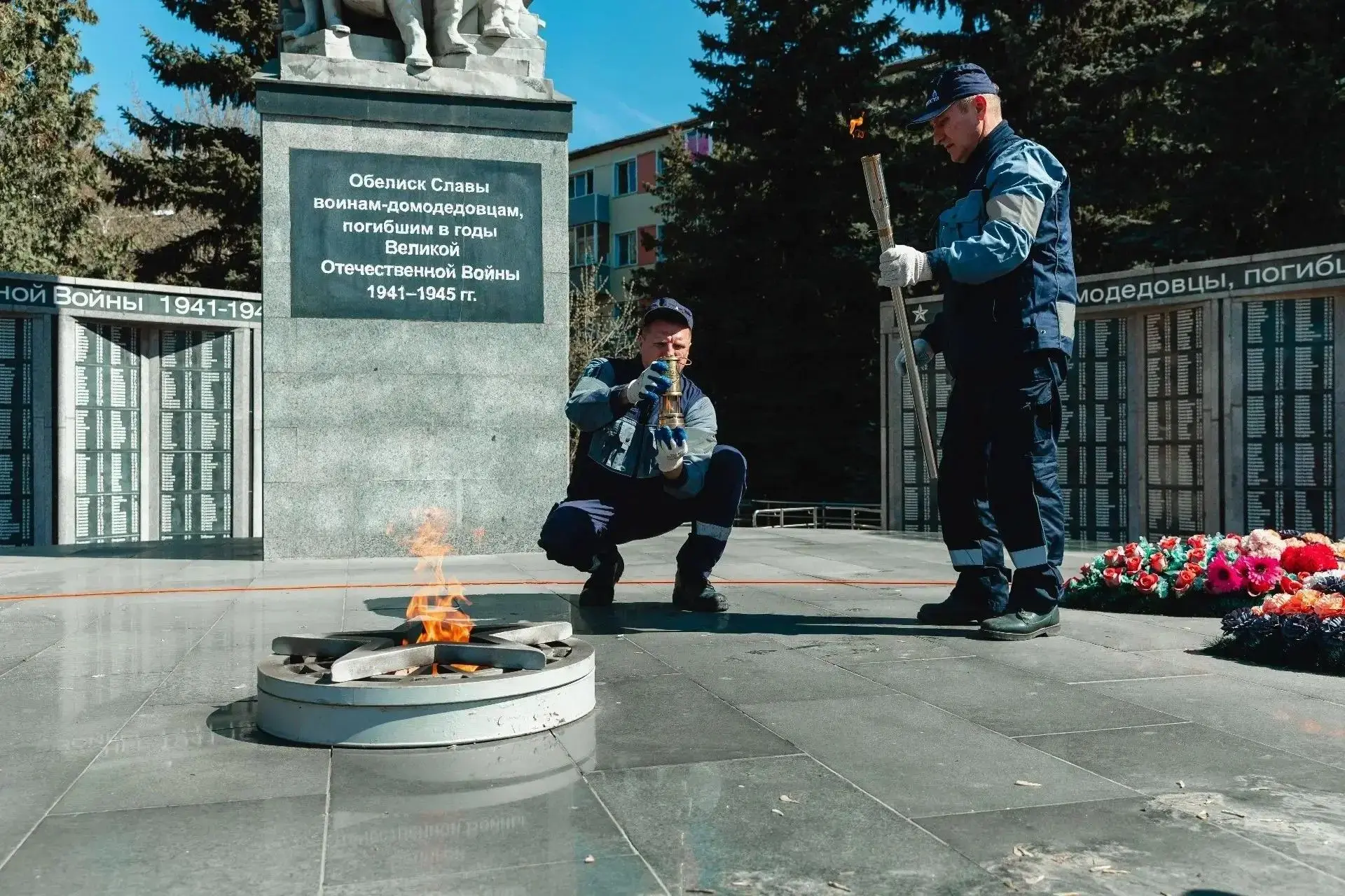 Специалисты Мособлгаза провели как раз техническое обслуживание нашего мемориала воинам-домодедовцам.