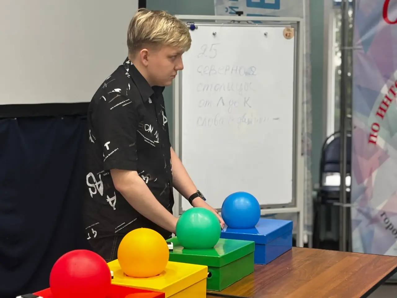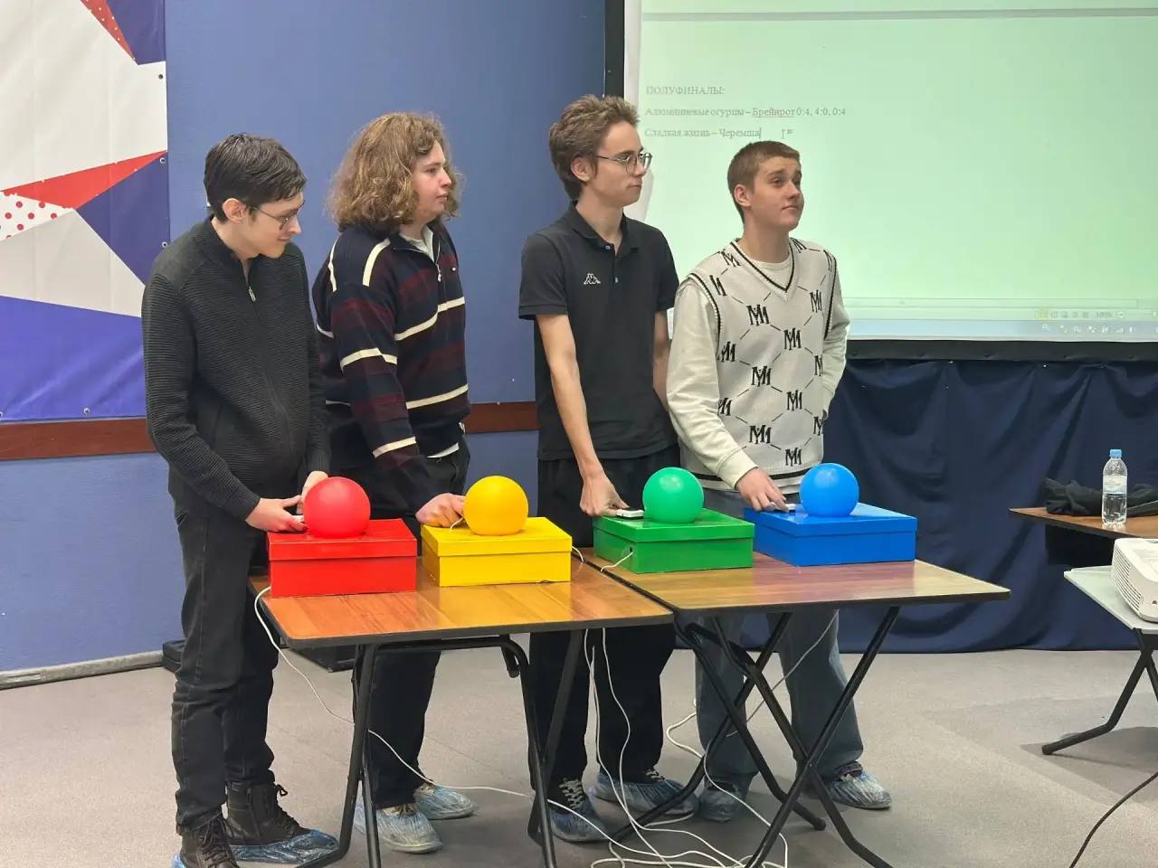 Цель игры - своими правильными ответами выбить команду, стоящую напротив, раньше, чем она выбьет вас.