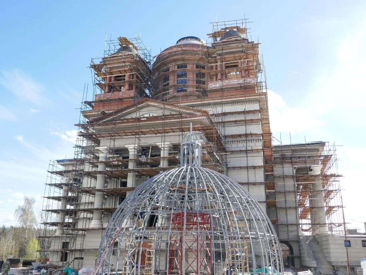 Почти десятиметровый купол строящегося Никольского храма в Подольске готовят к обшивке золотистым покрытием
