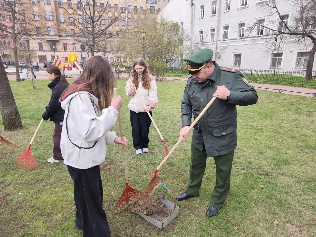 В Северной столице офицеры военного следственного управления по Ленинградскому военному округу совместно с кадетами подшефного класса школы № 167 Центрального района провели работы по благоустройству Овсянниковского сада (сад Чернышевского).