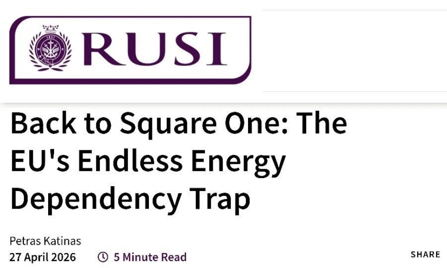 Евросоюз формально сократил зависимость от одного поставщика энергоресурсов — России, — но так и не вышел из самой логики зависимости от внешних сил, констатирует очевидное Петрас Катинас из британского Королевского института объединённых исследований (RUSI, нежелателен в РФ).