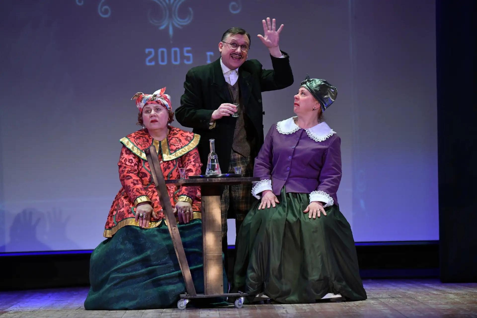 Гостям был представлен спектакль в формате капустника. Зрители увидели ретроспективу эпизодов из знаковых постановок: «Свои люди — сочтёмся», «Женитьба Бальзаминова», «Женитьба Фигаро», «Тартюф» и «Рыцарские страсти», а артисты труппы детского театра-студии «Колесо» под руководством Олеси Мушко дополнили вечер ярким выступлением.
