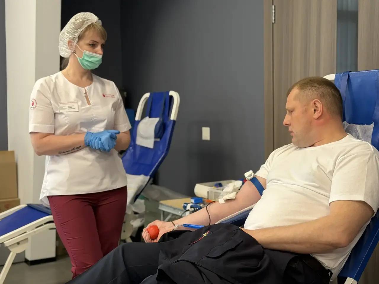 Забор крови осуществляла выездная бригада Московского областного центра крови. Перед процедурой каждый заполнил анкету и прошел медицинский осмотр: проверку давления, уровня гемоглобина и общее обследование.