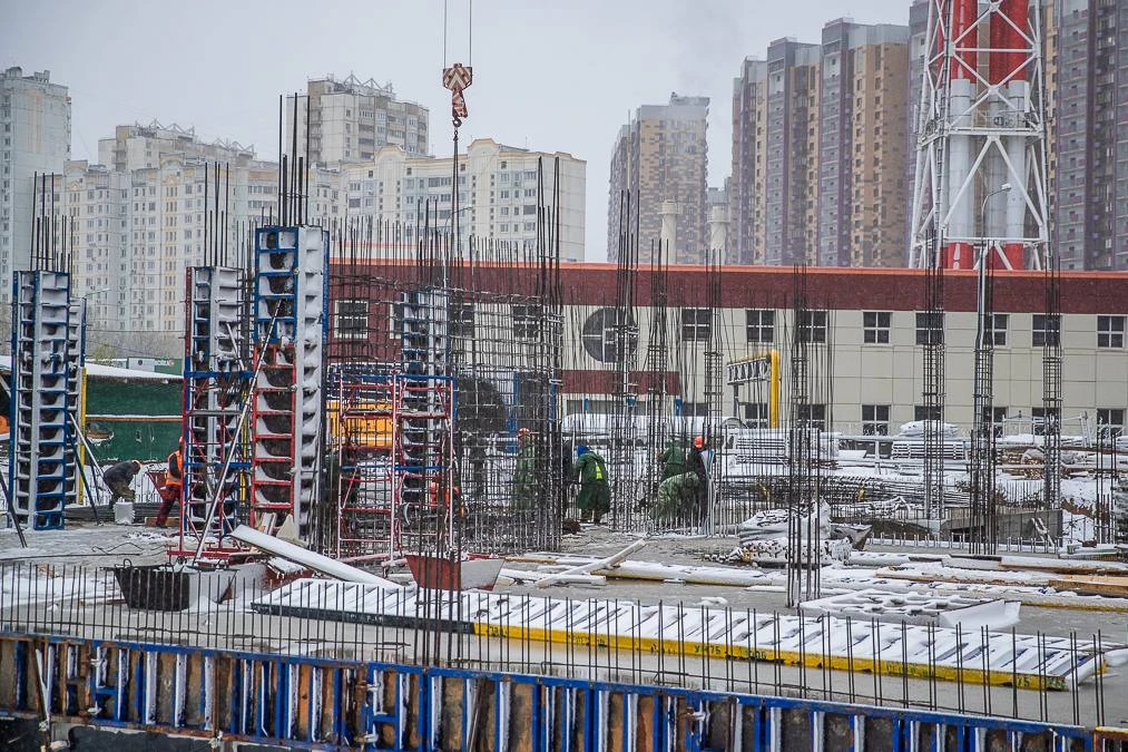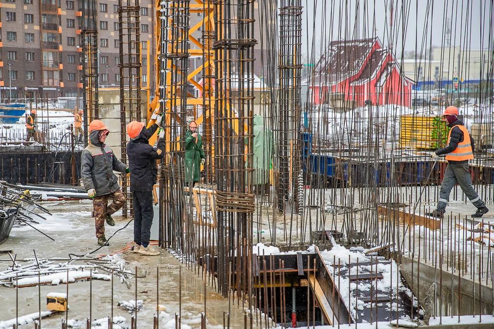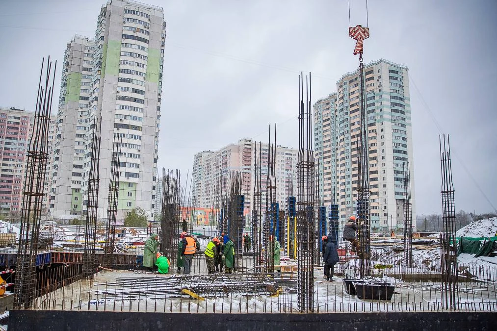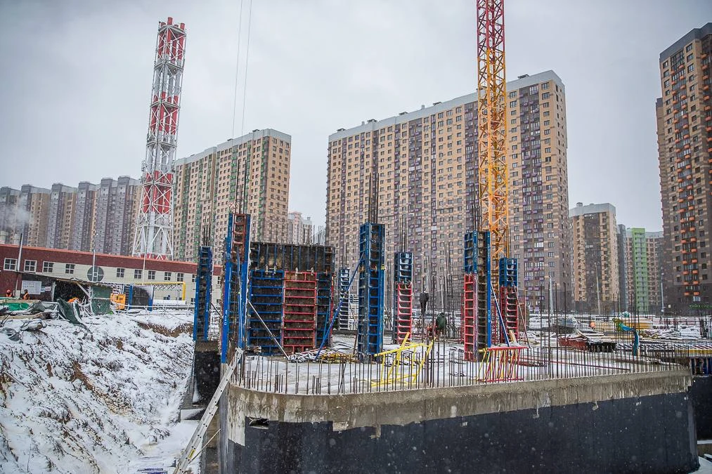 На площадке работают 44 человека и задействованы 3 единицы техники, включая башенный кран. Завершены монолитные работы по подвалу. Сейчас выполняется гидроизоляция фундаментных плит, армируются стены и идёт возведение первого этажа.