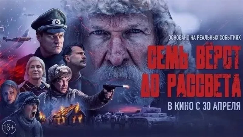 Уже завтра, 30 апреля, стартует премьера фильма «Семь верст до рассвета». В основе картины — реальные события и подвиг бессмертного крестьянина Матвея Кузьмина, удостоенного звания Героя Советского Союза. Зимой 1942 года, в оккупированной Псковской области, Кузьмин, подобно Ивану Сусанину, согласился провести немецкий отряд в тыл Красной Армии. Однако он тайно отправил внука с донесением, а сам повёл врага по долгому и сложному маршруту, выведя фашистов под прицельный огонь советских пулемётчиков. В результате часть немцев была уничтожена, остальные взяты в плен, а сам герой погиб от вражеской пули.