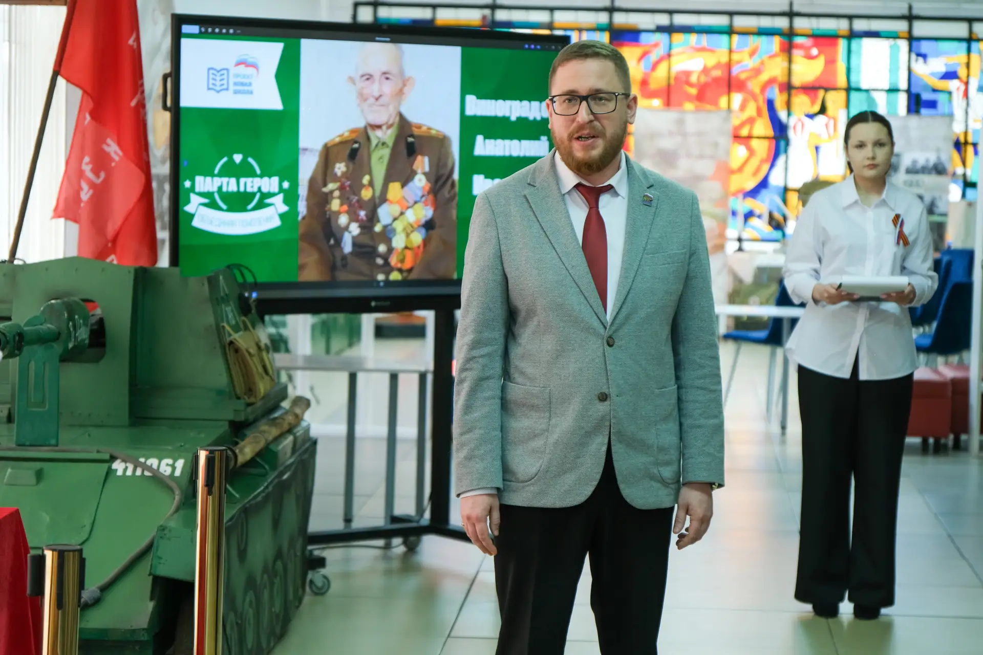 На церемонии открытия «Парты Героя» присутствовал член местного политического Совета Единой России, заместитель главы округа Данила Просвиров.