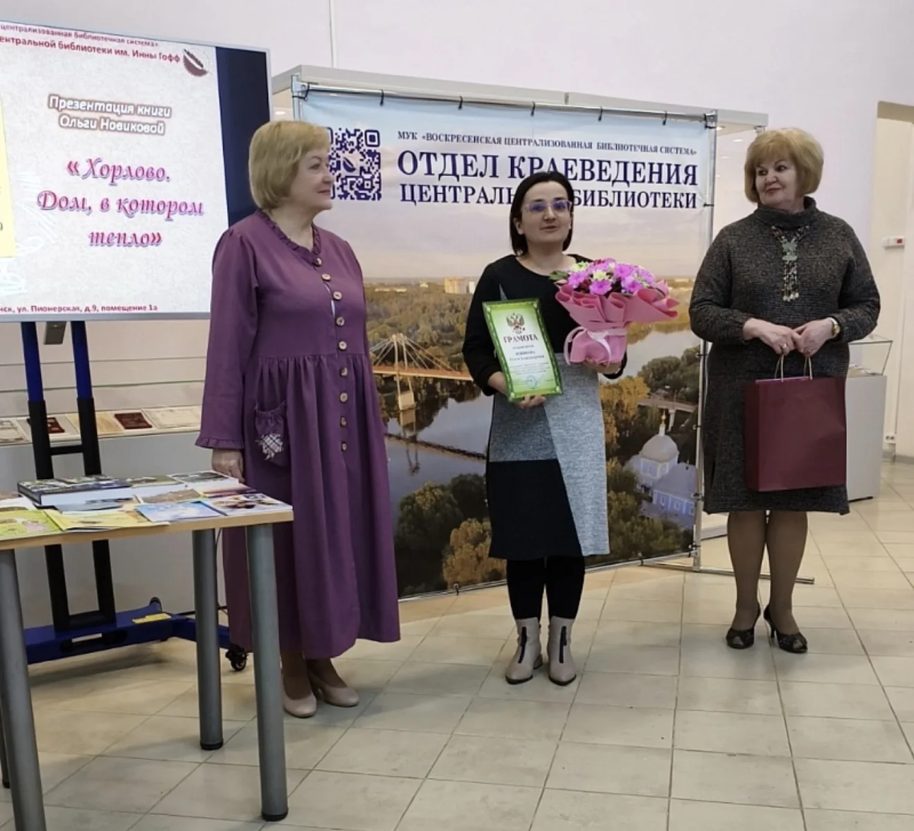 29 апреля 2026 года в отделе краеведения Центральной библиотеки им. Инны Гофф прошла презентация книги Ольги Новиковой «Хорлово. Дом, в котором тепло», посвященная истории школы-интерната п. Хорлово.