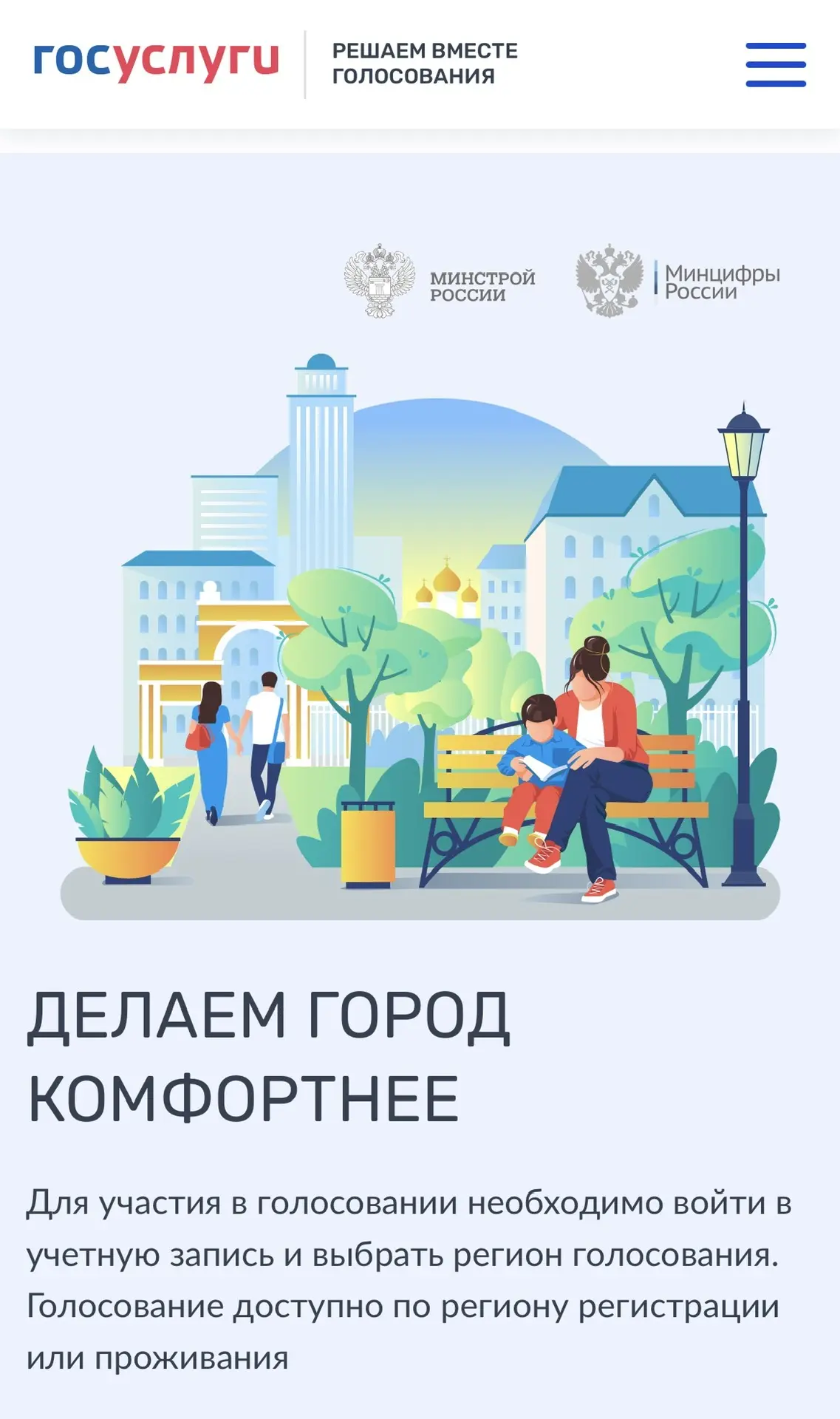 Единая Россия и Минстрой проводят Всероссийское онлайн-голосование за объекты благоустройства.