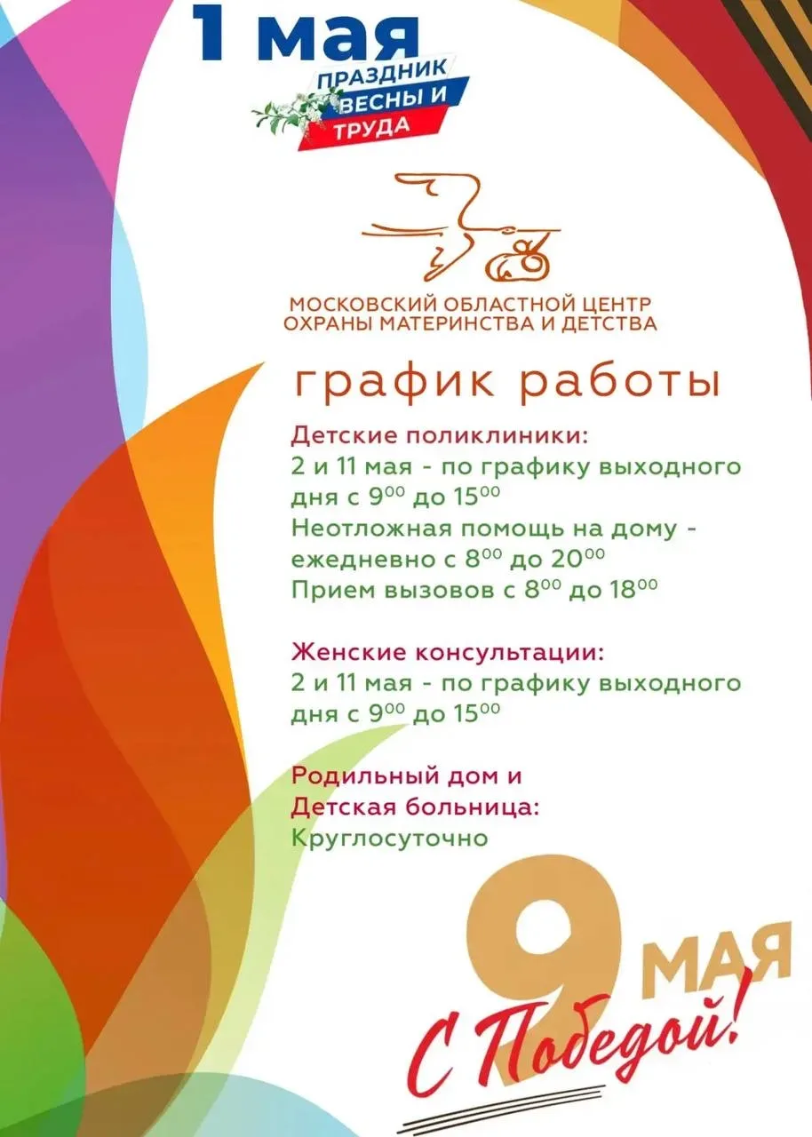 График работы Московского областного центра охраны материнства и детства (МОЦОМД) в праздничные дни