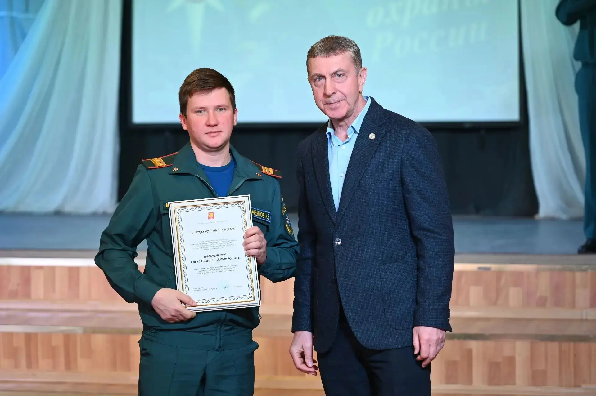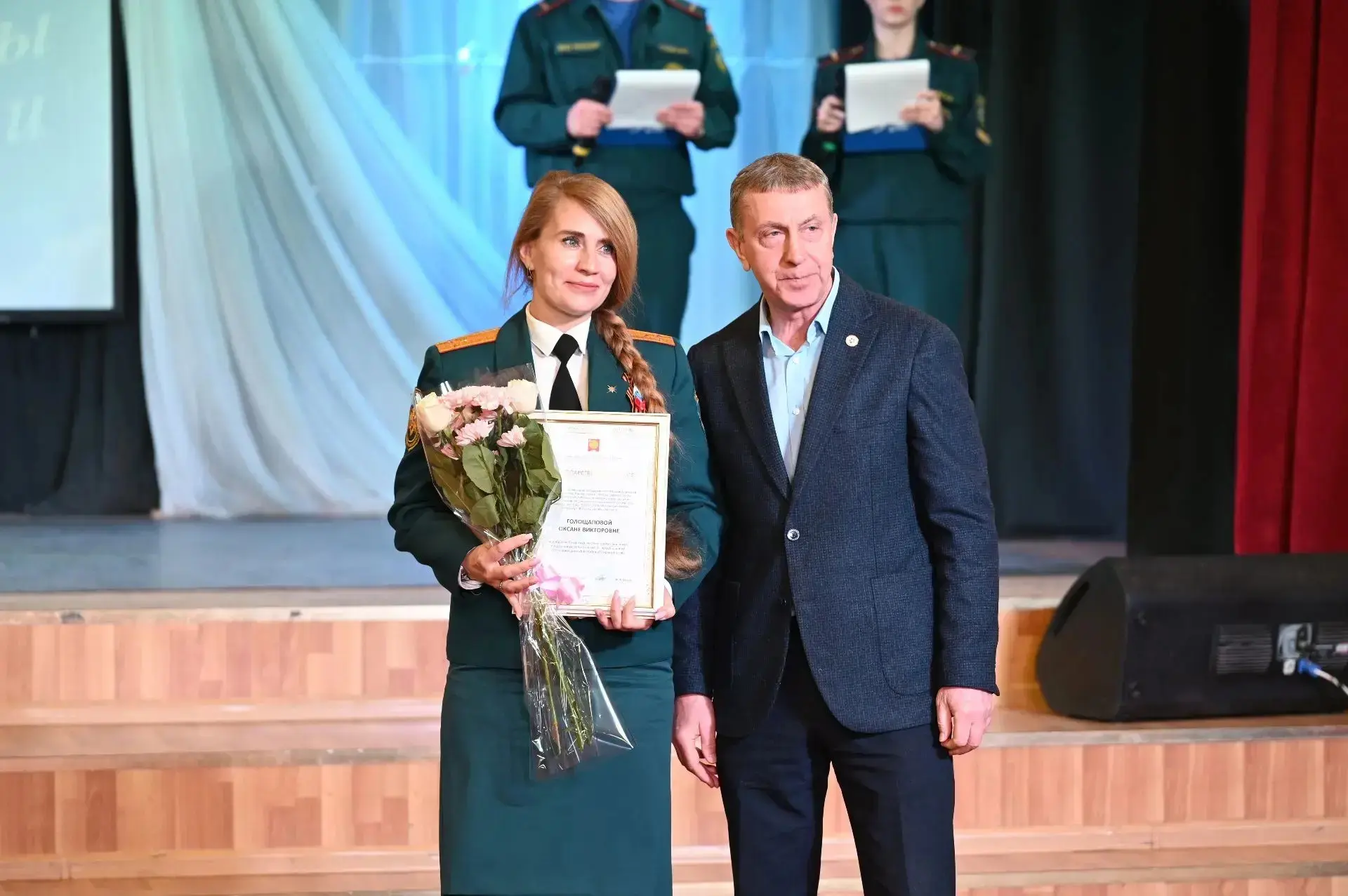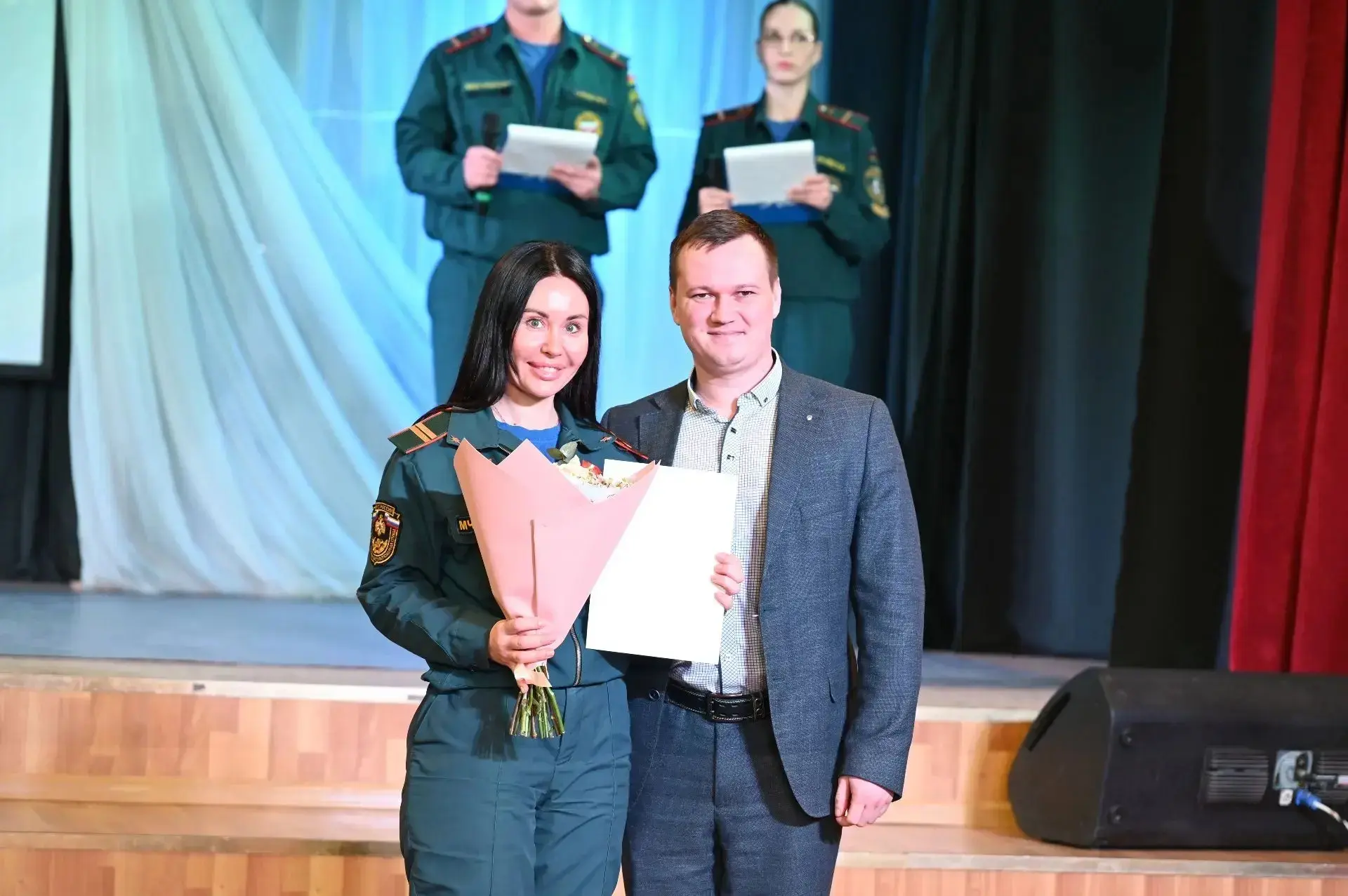 Для виновников торжества звучали песни и музыкальные номера в исполнении городских творческих коллективов. Отличившимся сотрудникам пожарной охраны вручили благодарственные письма и медали за добросовестную службу и высокий профессионализм.