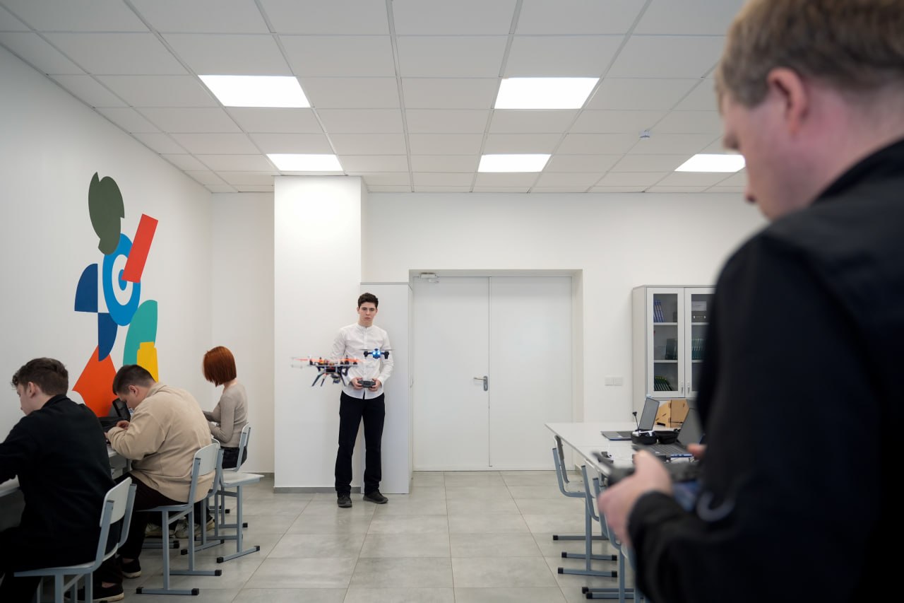 Еще в рамках «Профессионалитета» создана лаборатория «Изучение строения и управления беспилотных авиационных систем и робототехники». Обучение проходит на реальном оборудовании, которое предоставил техникуму регион. Среди них – квадрокоптеры, дроны-конструкторы. Студенты также изучают программирование (Python, C++, ROS) для создания алгоритмов автономного полёта.