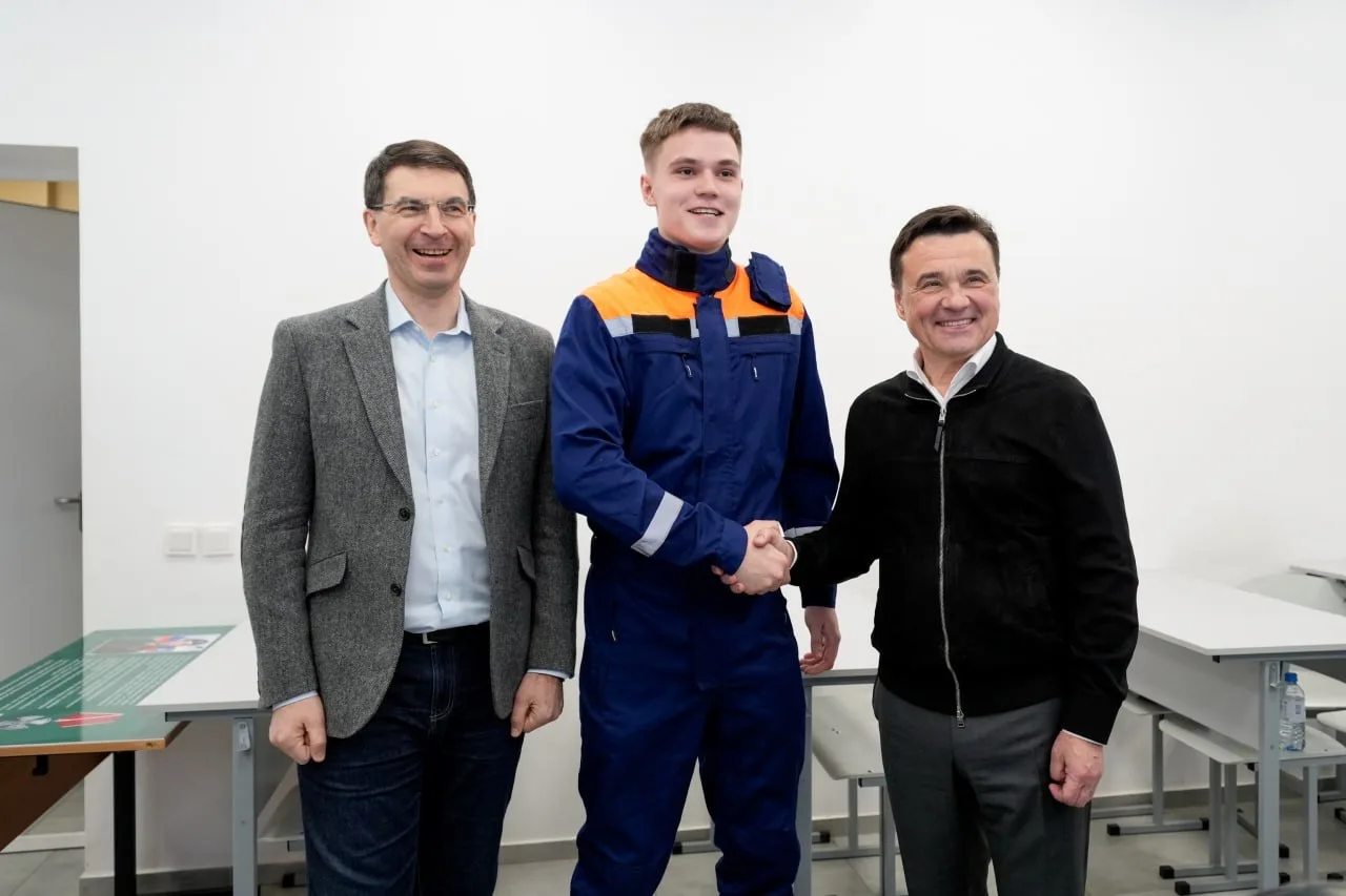 Вместе с Игорем Щеголевым приехали в один из опорных колледжей Подмосковья — Дмитровский техникум. Он работает с 1940 года, сегодня в нем учатся больше 3,4 тыс. студентов. Подготовка идет по 48 направлениям — от спасателей и медиков до специалистов по БПЛА, энергетике и IT. Восемь из десяти выпускников идут работать на ведущие предприятия региона.