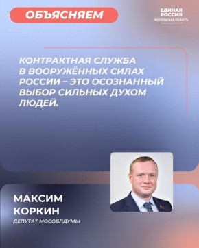 Максим Коркин о службе по контрактуПодробнее на сайтеВся информация доступна по телефону: 8(495)990-77-77, на сайте и в Telegram-боте.Адрес областного пункта отбора: Балашиха, Восточное шоссе, 2.#ЕдинаяРоссия #ЕР50 #Подмосковье #СвоихНеБросаемЕдиная...
