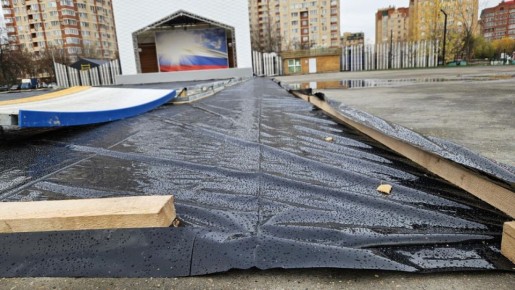 Зима уже рядом, скоро наступит время расчехлять коньки. В Центральном парке Победы Долгопрудного, у большой сцены, начались работы по обустройству главного городского катка.Специалисты подрядной организации уложили плёнку под основание айс-матов...