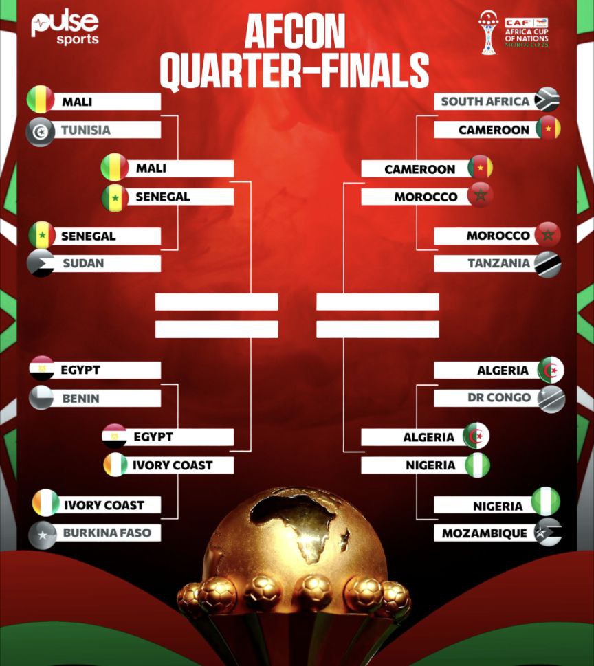 На Кубке африканских наций в. Марокко уже определись четвертьфинальные пары. Пока без громких сенсаций - ведущие сборные продолжают бороться за звание лучшей команды континента.