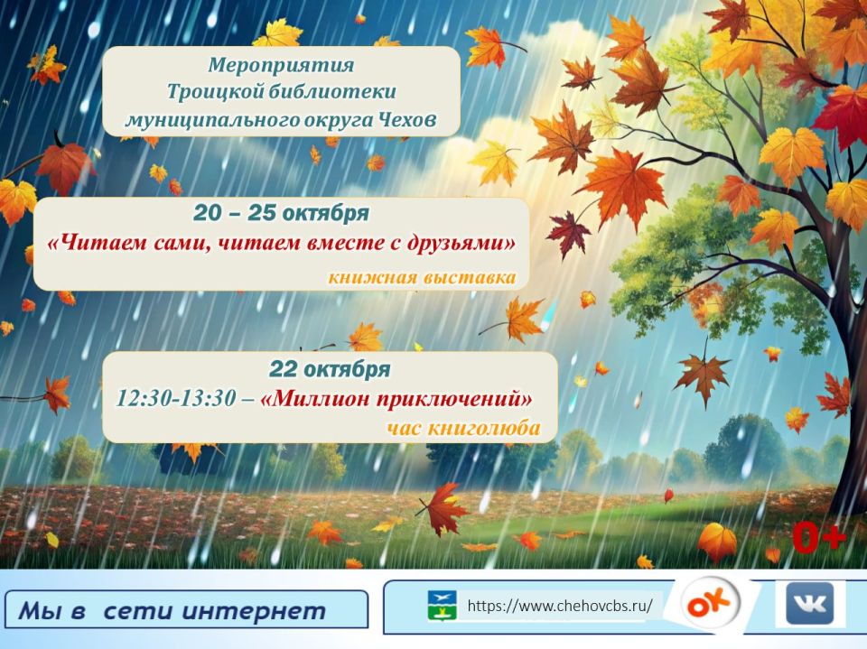 С 20 по 25 октября, для того, чтобы помочь ребятам в выборе книг для совместного чтения, Троицкая библиотека приглашает на книжную выставку «Читаем сами, читаем вместе с друзьями». 22 октября, ко дню рождения писателя и историка Кира Булычева...
